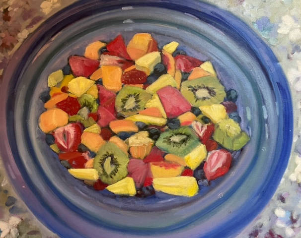 Fruit salad in blue bowl 18 x 24