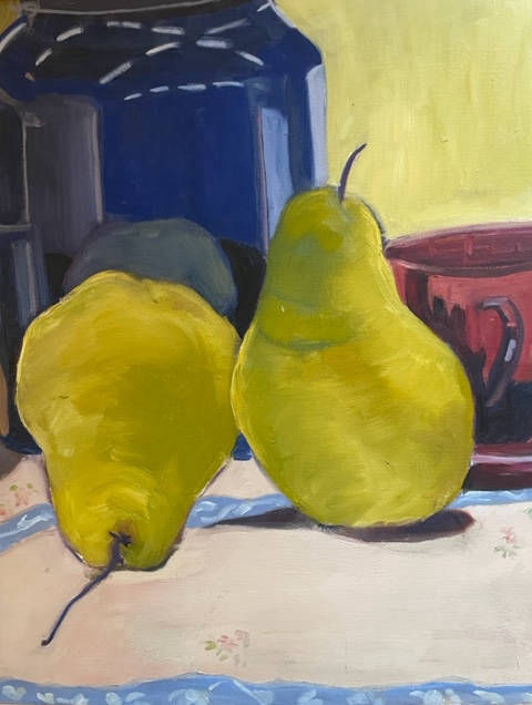 Pears with Blue jar 24x24
